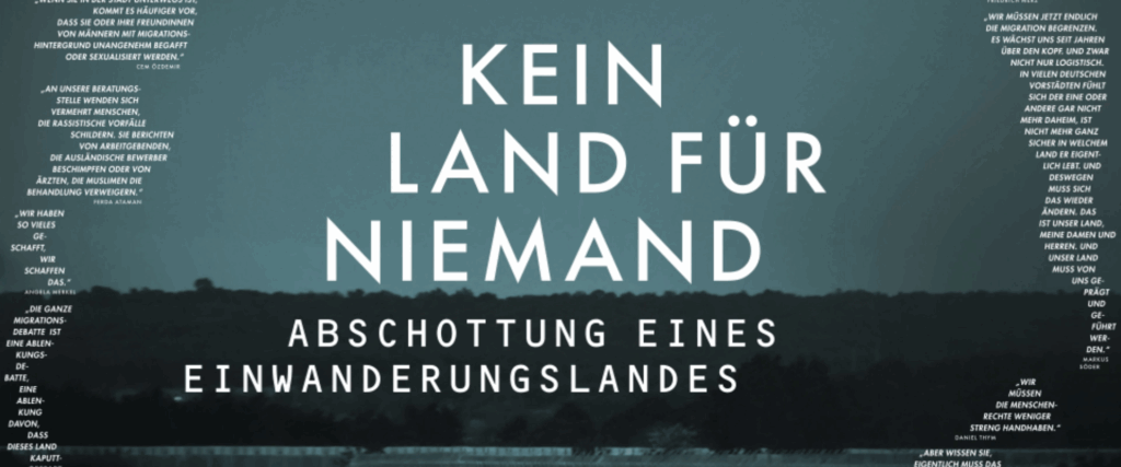Der Dokumentationsfilm Kein Land für niemand zeigt auf der einen Seite die Seenotretter_innen von Sea-Eye bei der Arbeit, dem Retten von in Seenot geratenen Geflüchteten auf dem Mittelmeer und dem Dokumentieren der mörderischen Angriffe der sogenannten libyschen und der griechischen Küstenwache auf Schiffe voller Geflüchteter. Auf der anderen Seite kommen Wissenschaftler_innen, Betroffene und Aktivist_innen zu Wort: Sie zeigen auf, was die Gründe für den Rechtsruck in Deutschland seit dem „Willkommenssommer“ 2015 sind und was zu tun wäre, um dem entgegenzusteuern und eine solidarische Gesellschaft aufzubauen. Eine Wissenschaftler_in hat das Schlusswort: Die Zukunft ist noch nicht geschrieben und wir haben noch die Chance auf ein gutes Leben für alle.